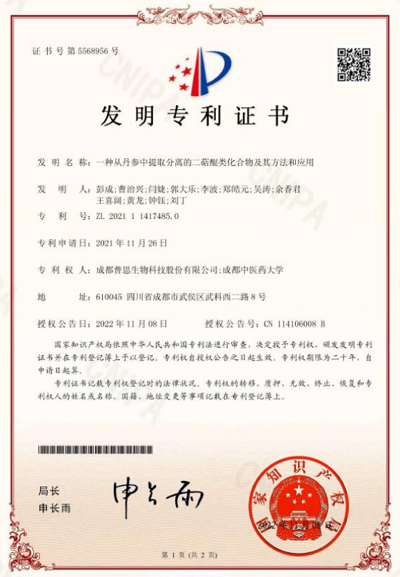 2019年 普思作為主要完成單位之一申報(bào)的“基于構(gòu)效關(guān)系的中藥活性物質(zhì)發(fā)現(xiàn)及其開(kāi)發(fā)應(yīng)用”項(xiàng)目,榮獲四川省科學(xué)技術(shù)廳科技進(jìn)步一等獎(jiǎng)。