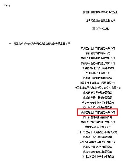 熱烈祝賀普思生物成都市第三批知識(shí)產(chǎn)權(quán)試點(diǎn)企業(yè)驗(yàn)收優(yōu)秀