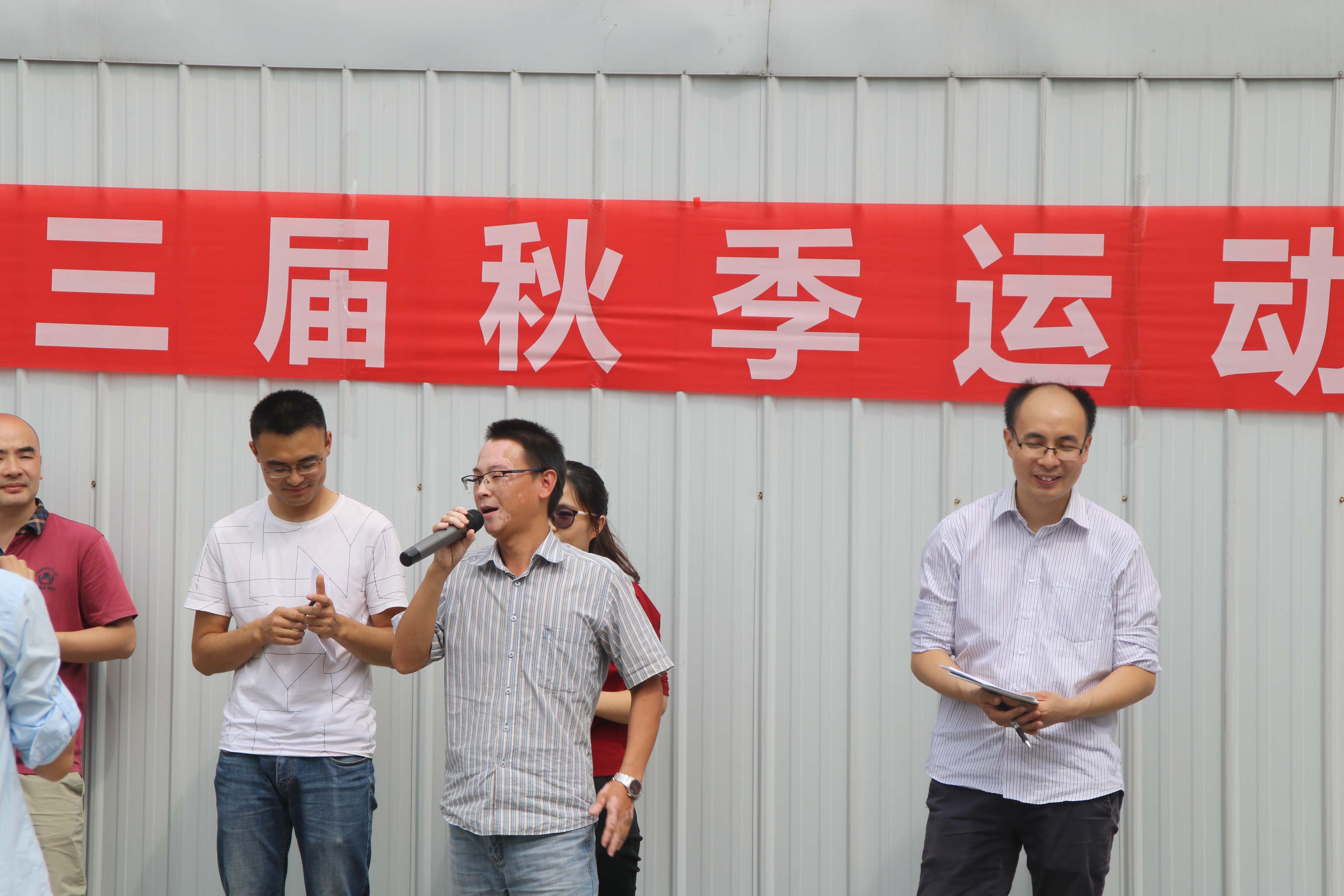 公司顧問郭建華先生(左一)為運動會二等獎獲得者頒獎