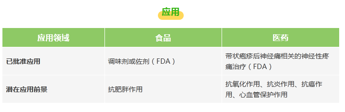 1.鎮(zhèn)痛作用:辣椒素通常被用于骨關(guān)節(jié)炎、類風(fēng)濕關(guān)節(jié)炎、糖尿病神經(jīng)病變、非糖尿病周圍神經(jīng)病變和帶狀皰疹后神經(jīng)痛。研究表明,辣椒素可以選擇性結(jié)合具有高通透性的Ca2+陽離子通道TRPV1,促進(jìn)P物質(zhì)消耗,導(dǎo)致受體功能降低或損傷,從而達(dá)到鎮(zhèn)痛的效果。