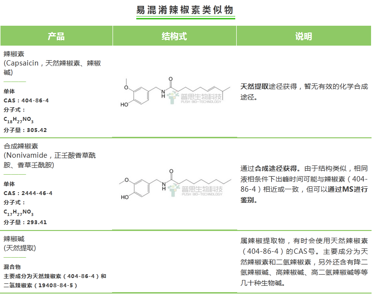 辣椒素(Capsaicin)是一種無色無味的生物堿類化合物。其作為辣椒中的主要活性成分,是TRPV1受體激動劑,具有減輕疼痛、抗氧化、抗炎、神經(jīng)保護(hù)和抗癌作用,近年來在醫(yī)藥食品、化妝品等領(lǐng)域的研究中受到了廣泛關(guān)注。本文將深入介紹辣椒素的基本信息、理化性質(zhì)、藥理活性作用,及其在醫(yī)藥、食品等領(lǐng)域的應(yīng)用。(ps.文末有易混淆辣椒素類似物區(qū)分要點哦?。?/span>