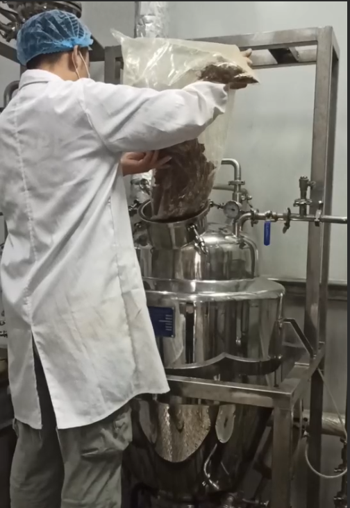 將含揮發(fā)油的藥材加入提取器中,加入適量的水浸泡,關閉提取器投料口。