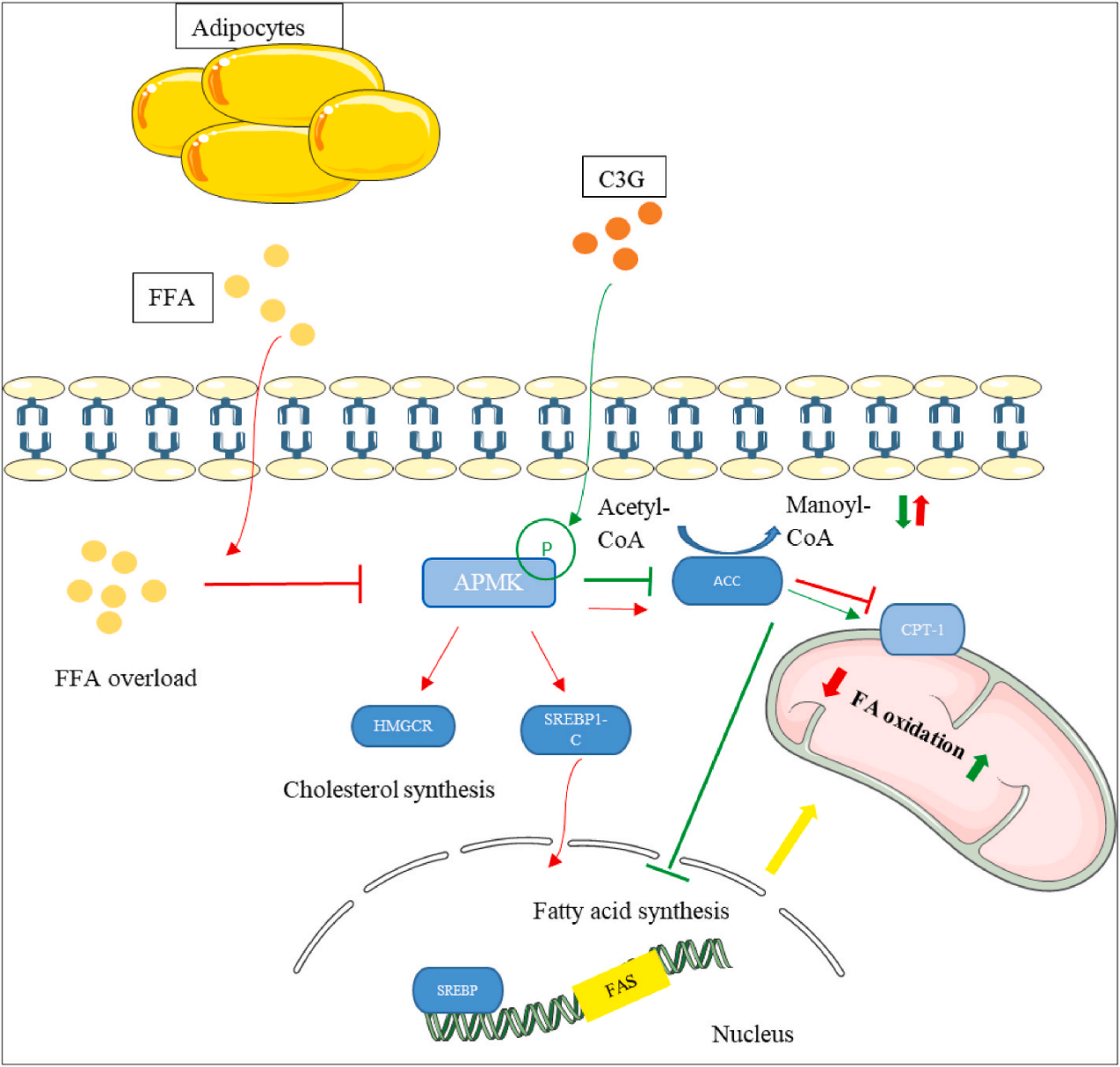 圖4 矢車(chē)菊素-3-O-葡萄糖苷(C3G)調(diào)控脂質(zhì)代謝示意圖[9]