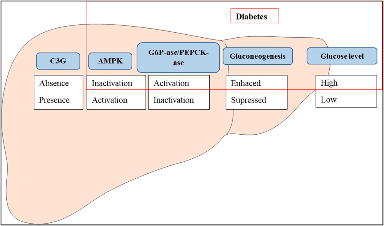圖2 矢車(chē)菊素-3-O-葡萄糖苷(C3G)在糖尿病中的調(diào)控機(jī)制