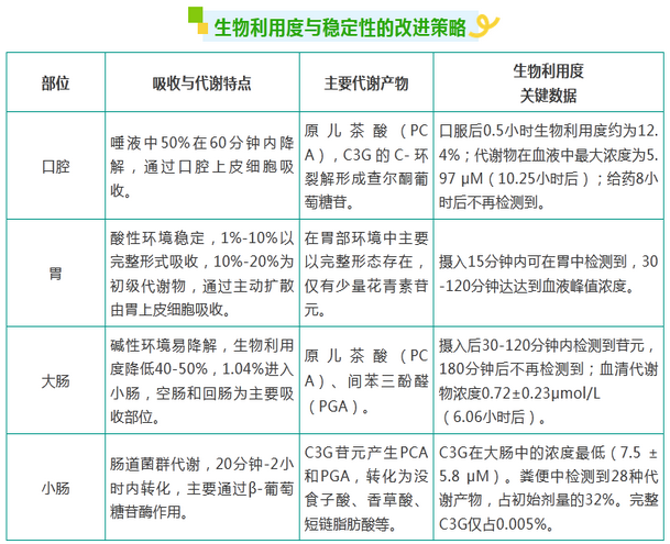 C3G的臨床應(yīng)用潛力受到其理化性質(zhì)的限制,主要是低穩(wěn)定性和低生物利用度。近期的研究重點(diǎn)之一是開(kāi)發(fā)新策略以克服這些挑戰(zhàn)。