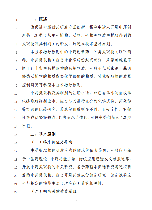 為促進(jìn)中藥新藥研發(fā)守正創(chuàng)新,指導(dǎo)申請(qǐng)人開(kāi)展中藥創(chuàng)新藥1.2類(lèi)(從單一植物、動(dòng)物、礦物等物質(zhì)中提取得到的提取物及其制劑)的研發(fā),藥品審評(píng)中心組織起草了《中藥提取物質(zhì)量控制研究技術(shù)指導(dǎo)原則(征求意見(jiàn)稿)》。